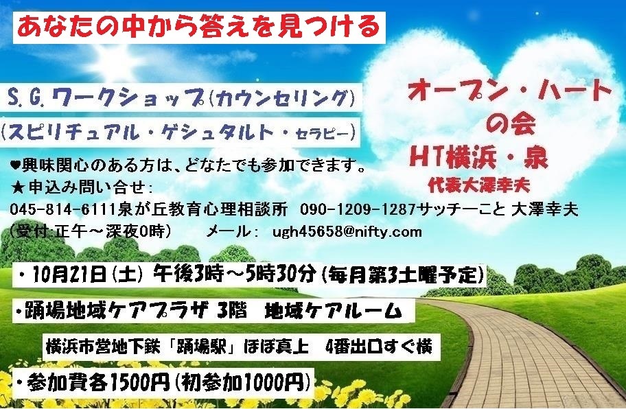HT横浜・泉 「あなたの中から答えを見つける!S.Gワークショップ(S.Gグループ・カウンセリング)」 |