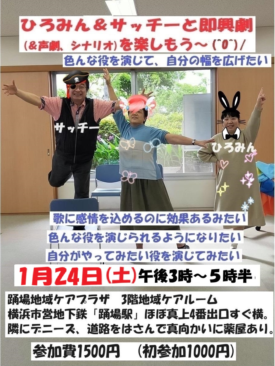 HT横浜・泉 「ひろみん&サッチーと即興劇(&声劇、シナリオ)を楽しもう」 |