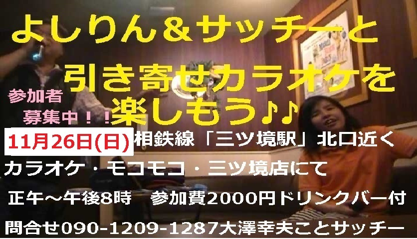HT横浜「よしりん・サッチーと引き寄せカラオケを楽しもう(^O^)/」☆参加者募集中☆ |